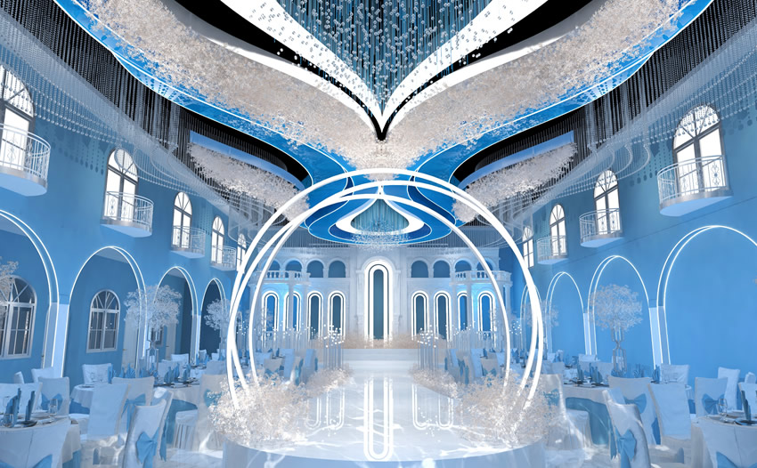 婚礼堂设计是一种专门用于举办婚礼和其他相关活动的室内设计。以下是一些关于婚礼堂设计的建议: